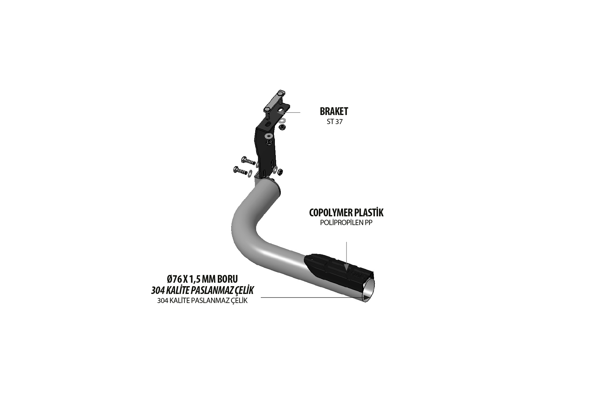- Boru Ölçüleri: 76 mm x 1,5 mm