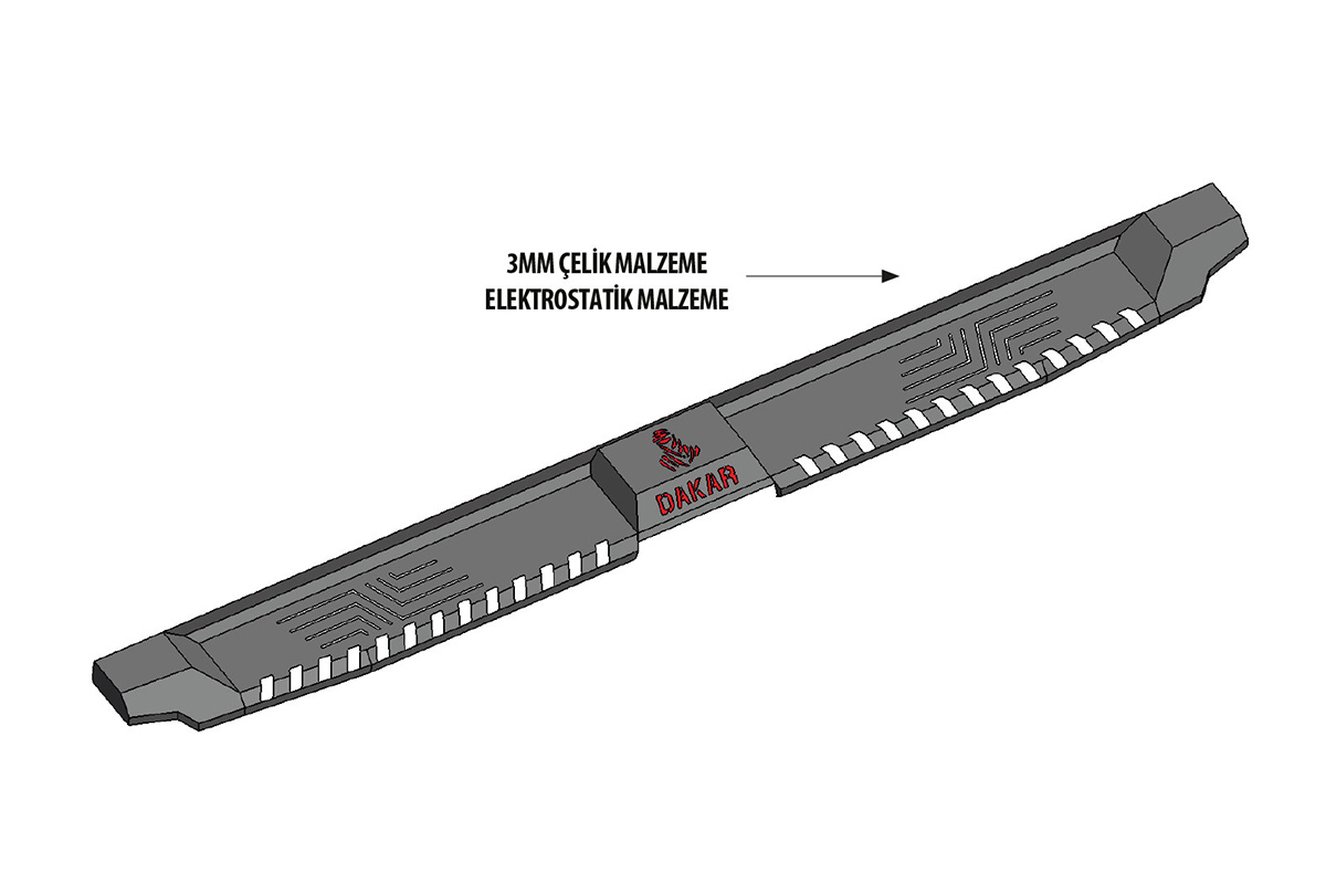 - Dakar yan basamakların gövdesi 2.3mm Çelik malzemeden üretilmektedir. Üst kaplamasında Elektrostatik boya kullanılmıştır.